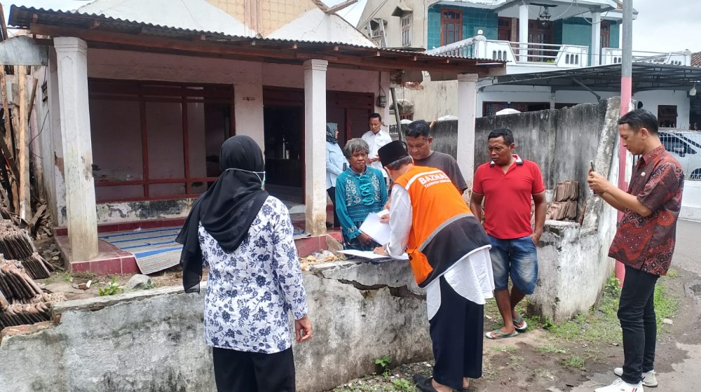 Tempeh Tengah - Badan Amil Zakat Nasional (BAZNAS) menyerahkan bantuan secara simbolis untuk pembangunan bedah rumah di Dusun Krajan Timur RT 19 RW 02 ...